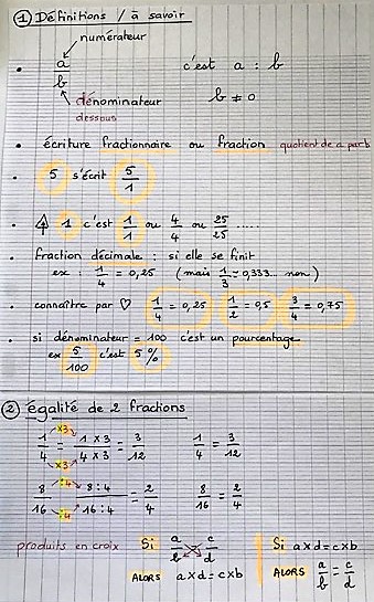 Quelques précisions en image : la fiche au complet (elle nous aidera pour revoir une ou plusieurs notions sur les fractions)