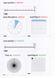 Remarque : On a pris aussi le temps (et on va le refaire d’ailleurs) de remettre une droite graduée sous les yeux quand le travail est fini afin de faire des liens entre ces différentes écritures et/ou représentations .