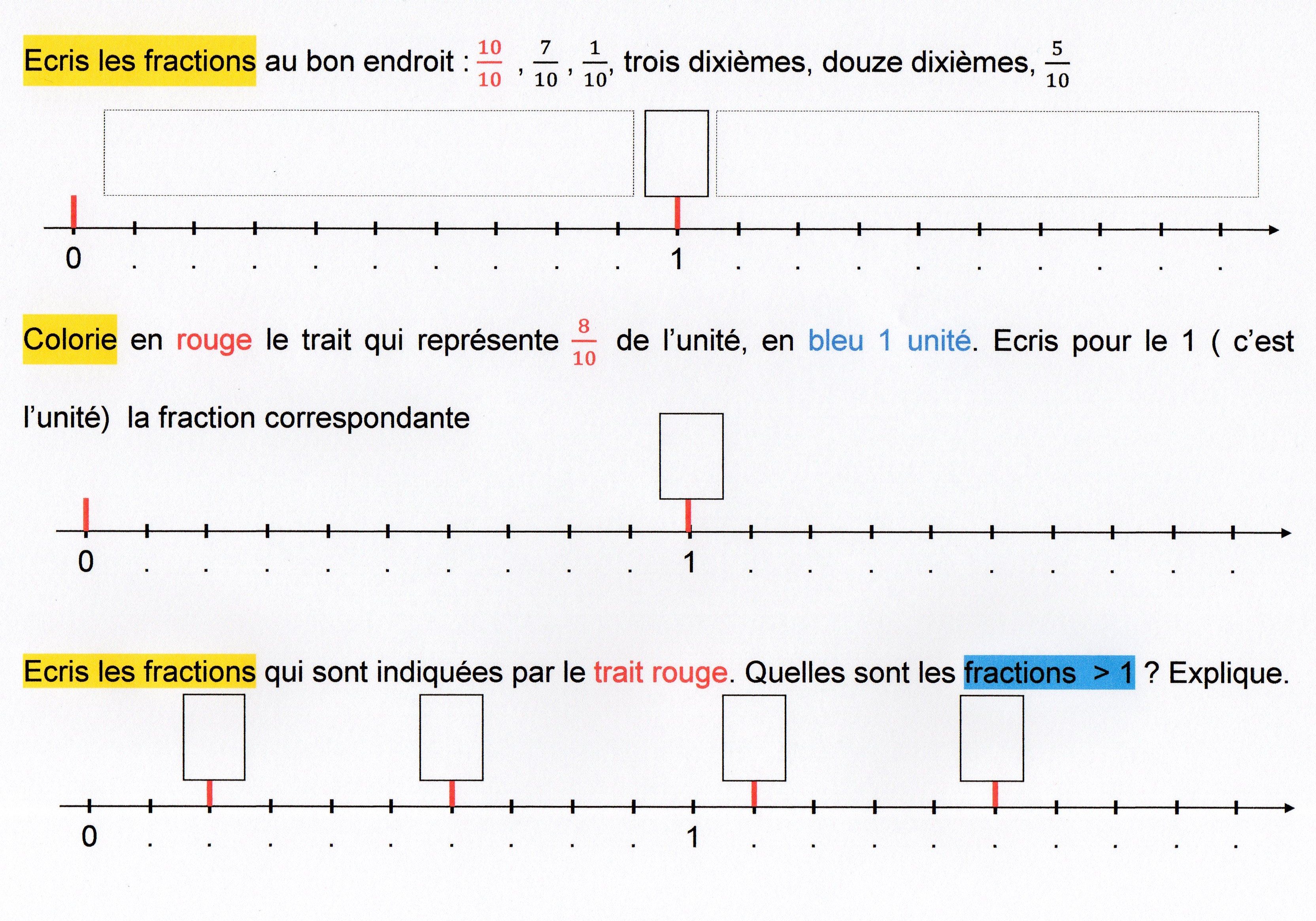 Après quelques réflexions sur le retour des fractions (Fractions 1 ici et fractions 2 là) , nous avons continué nos manipulations avec les fractions ( la fraction du jour est plutôt devenue la fraction de la semaine car il n’y a pas que des fractions au programme ….. et il n’est pas toujours possible de trouver du temps ….)
