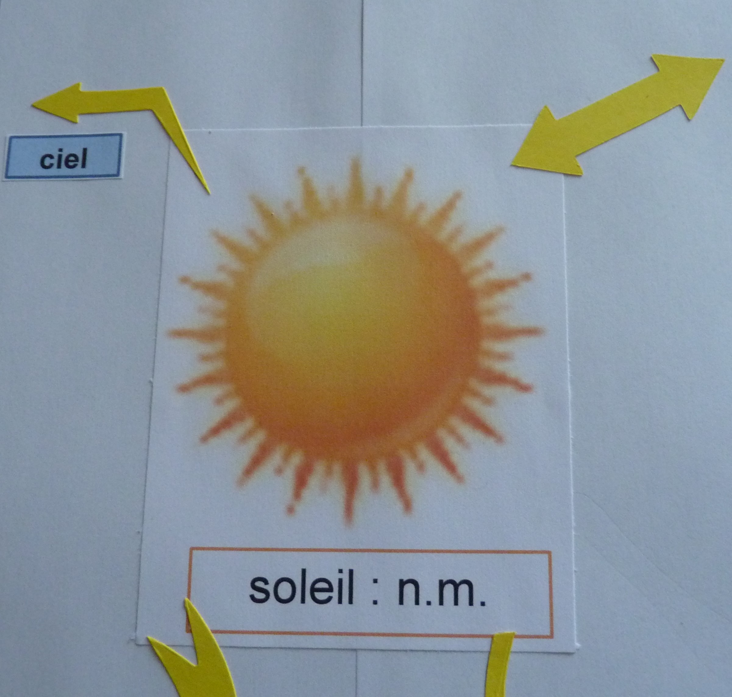 Il ne me reste plus qu’à faire découvrir cette affiche à Léo, d’en discuter, de lui faire trouver des phrases qui utilisent ces mots … puis nous y reviendrons quelques jours après (devinettes ….) et pourquoi pas chercher aussi comment ce mot « soleil » se dit et s’écrit dans d’autres langues …..