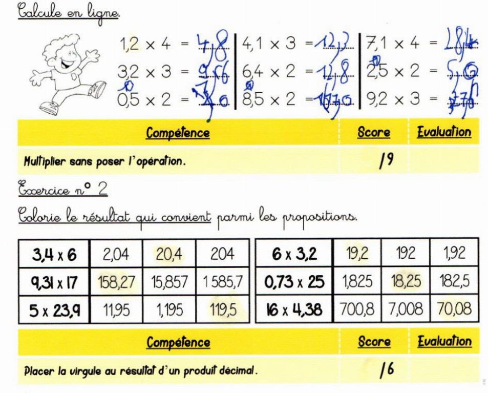 - un produit : on surligne , on peut préparer le signe X pour la réponse au-dessus