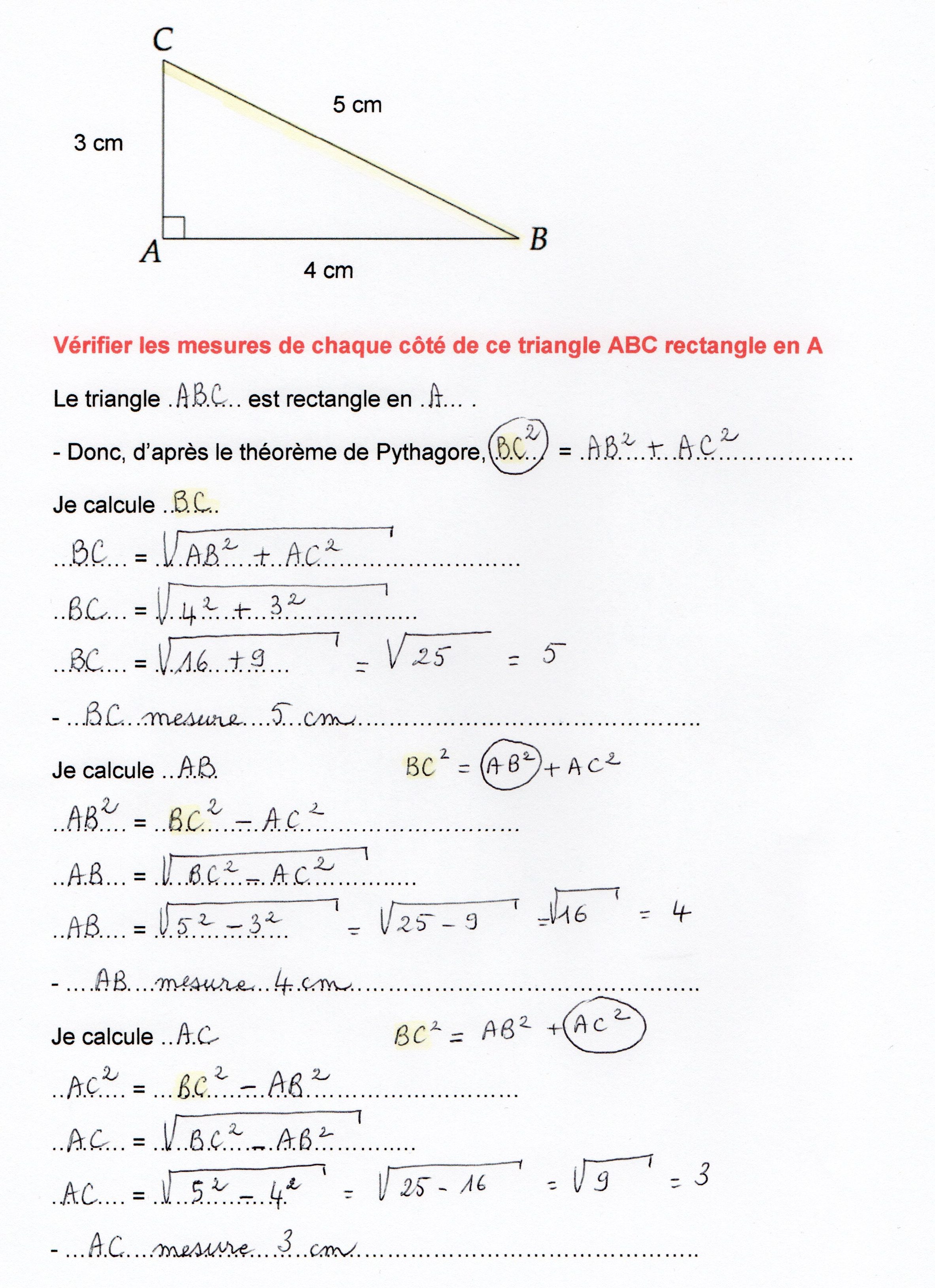 page 3 : Vérifier les mesures des côtés d’un triangle rectangle