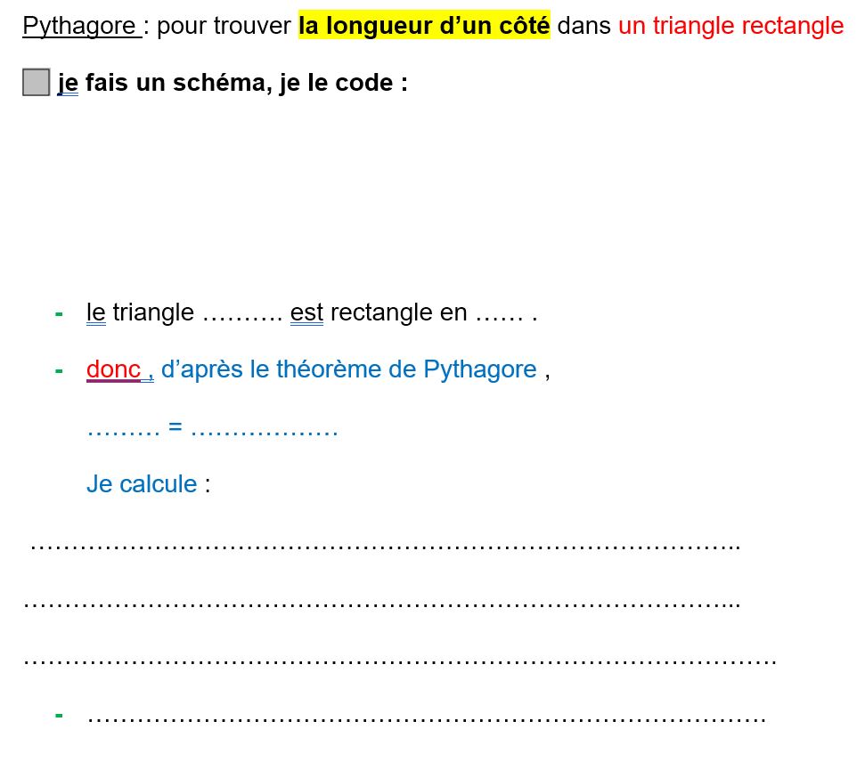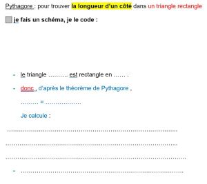 page 2 : Calculer la mesure d’un côté d’un triangle rectangle et fiche d’aide