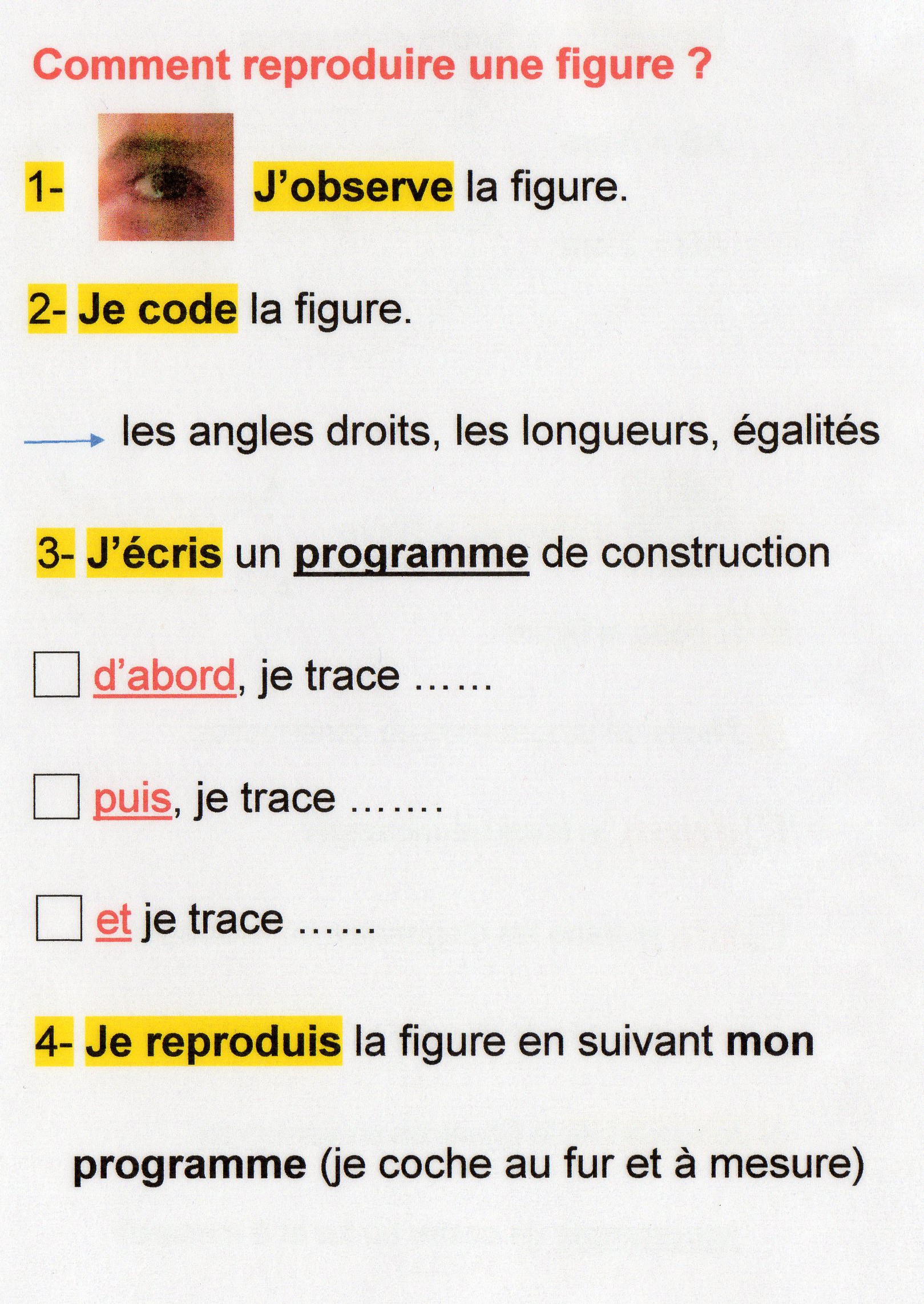 Là aussi , trouver la « procédure » , la marche à suivre qui convient : exemple pour tracer un triangle dont on connaît la mesure d’un côté et des 2 angles