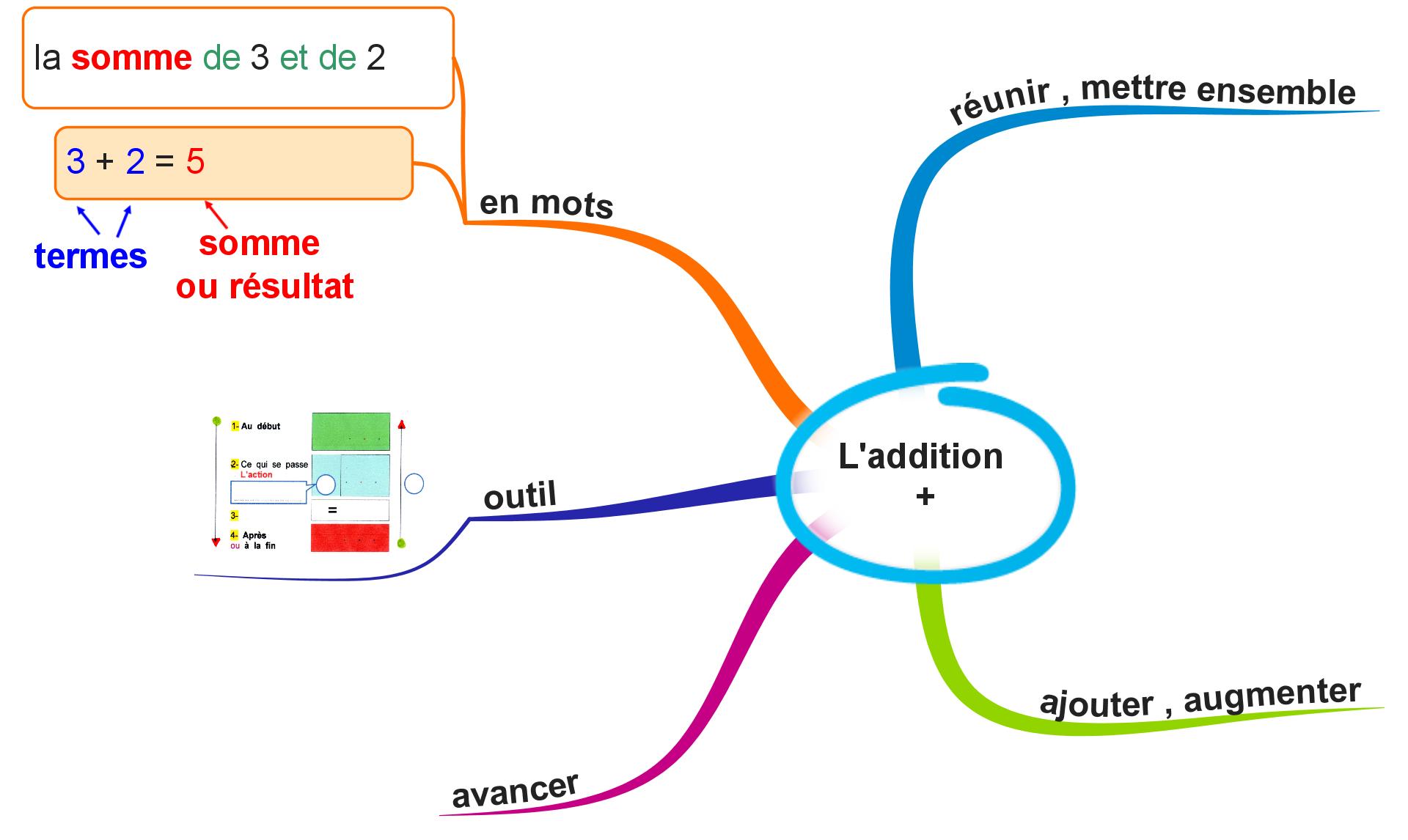 - On a donc repris ce problème (sur une autre feuille) : en rappelant que l’on peut aussi faire le schéma en ligne (horizontal), le signe + est entouré (cela permet aussi d' »installer » la situation)