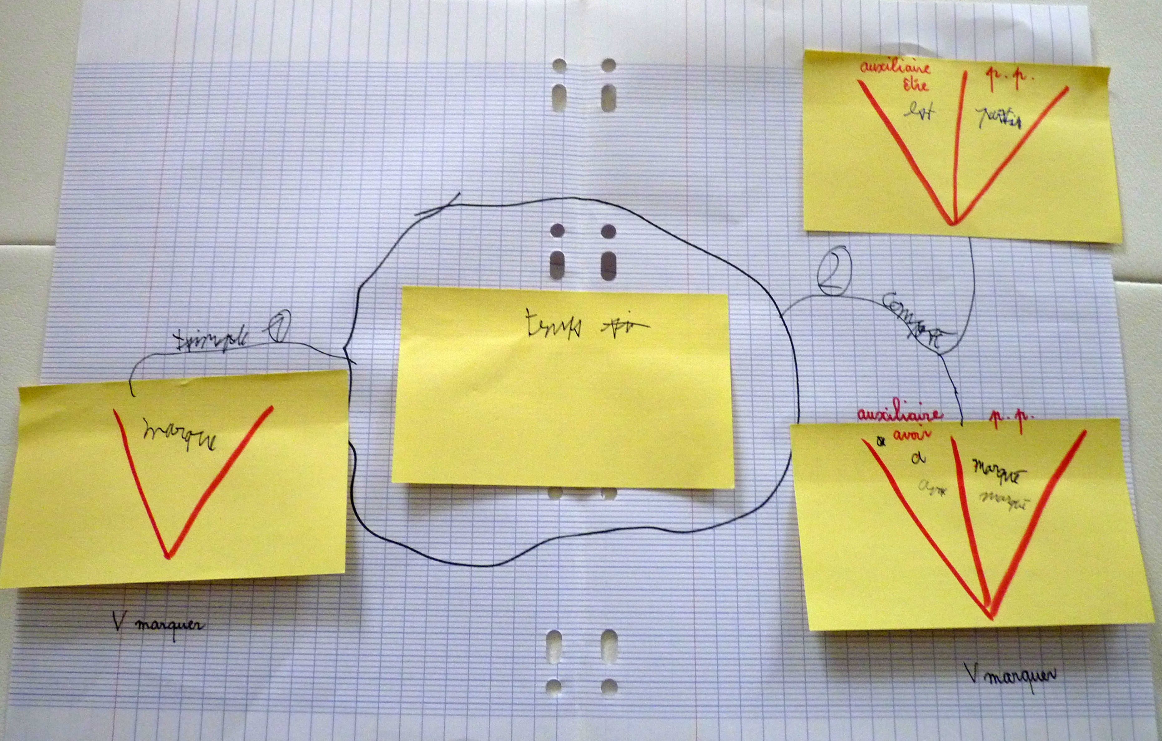 Un détail : lorsque le temps composé a ses 2 parties séparées par un adverbe ou la négation, j’ai demandé à Léo de relier ces 2 morceaux pour bien les mettre en relief et cela l’a aidé ( sans oublier auparavant de surligner le verbe ), par exemple :